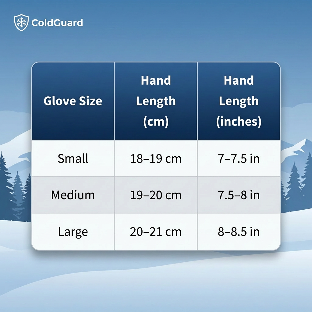 | Glove Size | Hand Length (cm) | Hand Length (inches) |